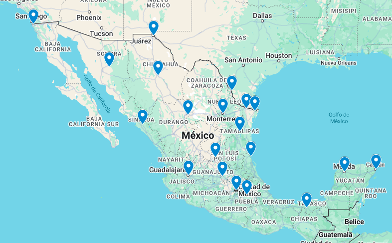 Tenemos presencia en Tamaulipas Tabasco Cancún Nuevo León Querétaro San Luis Potosí Ciudad de México , sonora